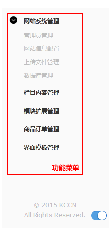 功能菜单: 1、网站系统管理:包括管理员管理、网站信息配置、上传文件管理等内容,具体使用方法请查看“网站系统管理”。