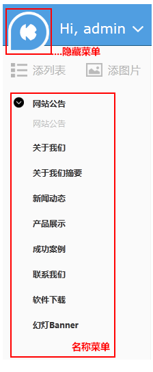 隐藏菜单: 点击图标可选择隐藏或显示左侧菜单