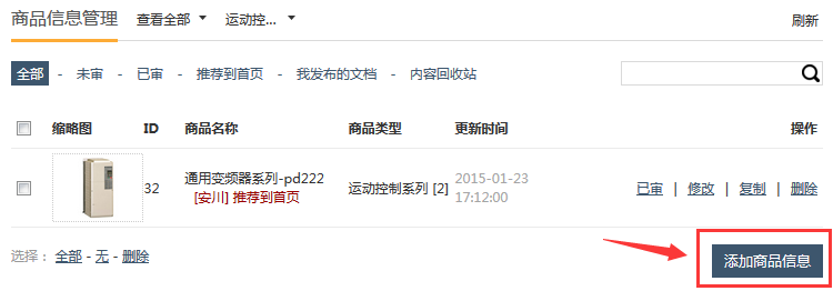 注:产品系统可在管理中添加,但是在添加内容时,需要自己选择所属栏目
