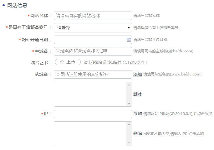 6、 填写网站信息:(金创已将查询网站信息发给客户)