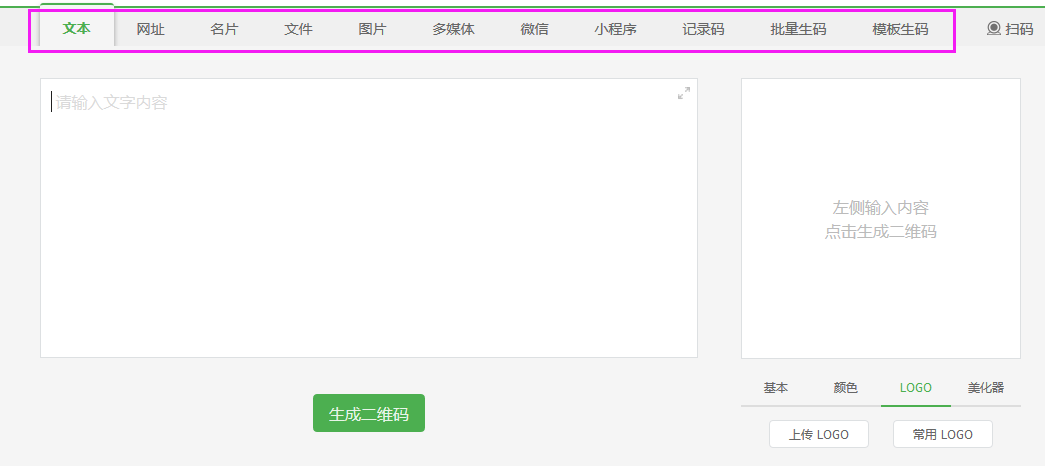 一、打开二维码生成地址:【二维码生成地址】