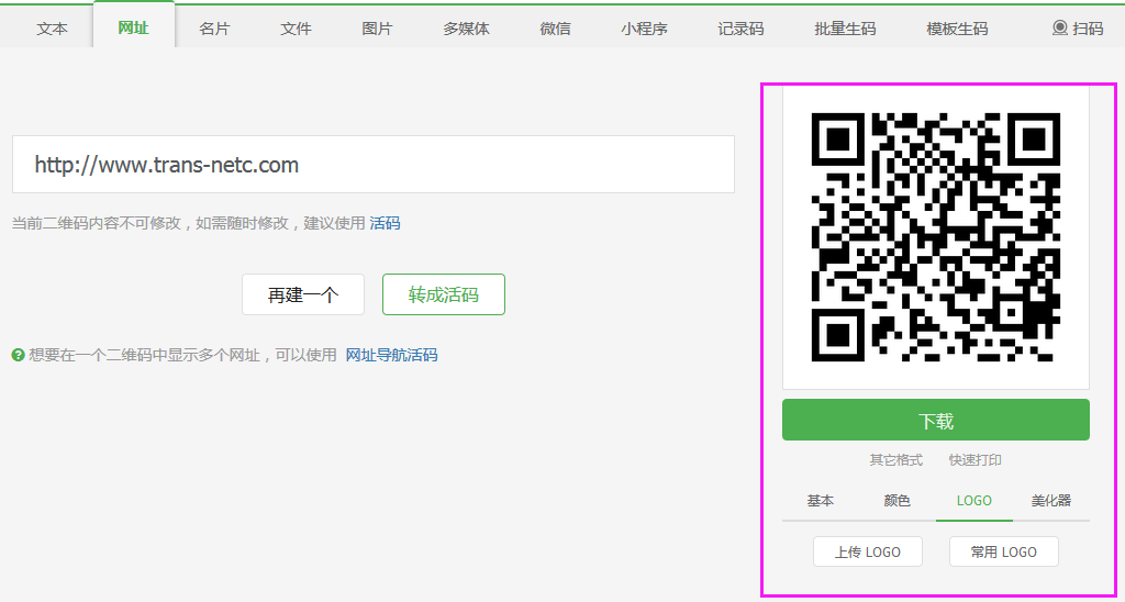 五、若是二维码不变内容要变或添加更多的内容,可转成活码