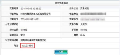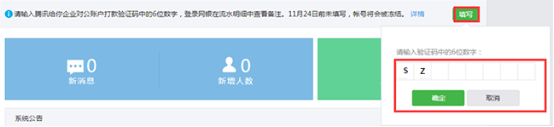 通过网银或联系银行柜台打印回单查看腾讯公司给您对公账户打入的1分钱收入和6位数验证码数字。验证码显示形式,请看下图:(显示“2个英文字母+6位数字”,例:SZ123456);